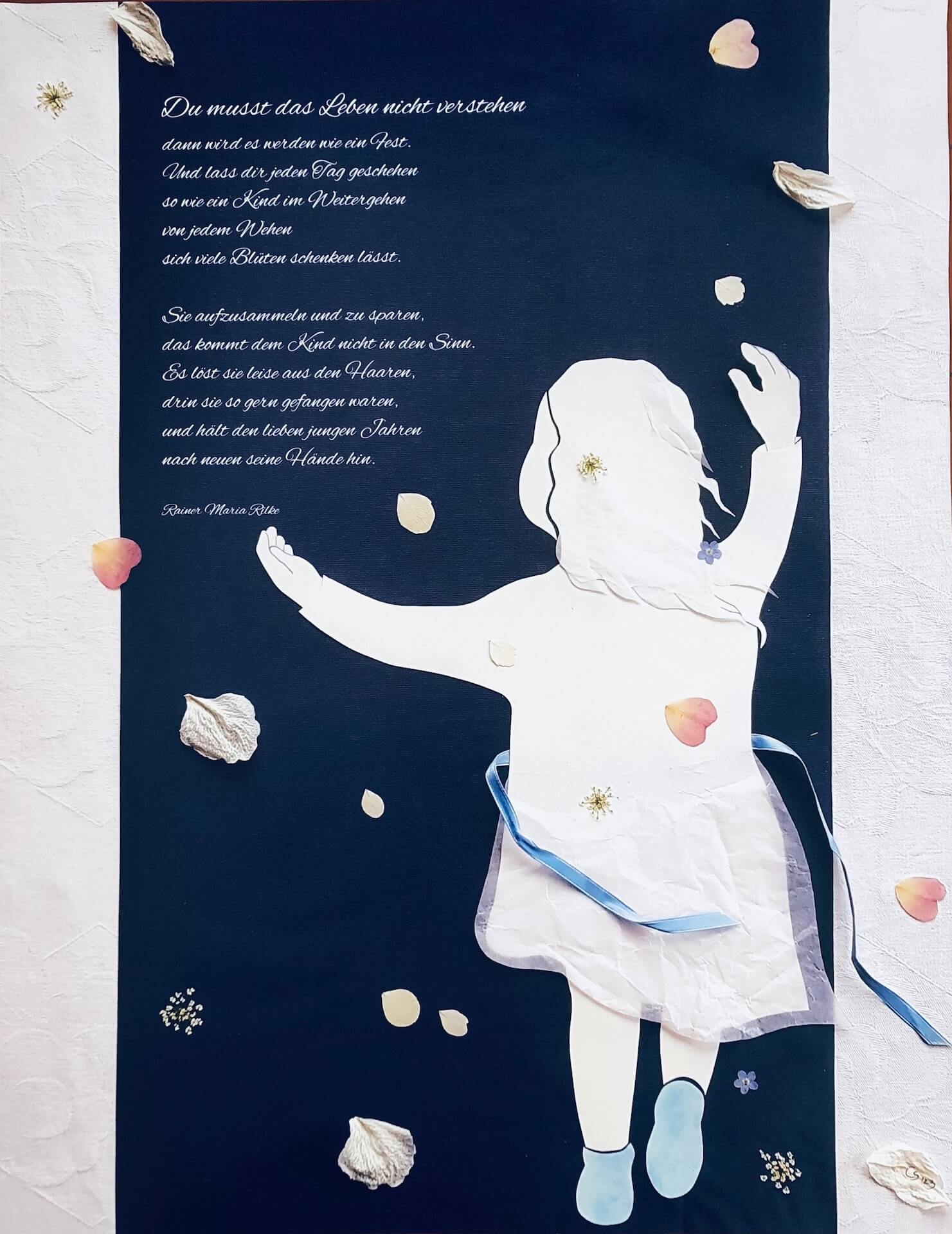 Du musst das Leben nicht verstehen, dann wird es werden wie ein Fest. Und lass dir jeden Tag geschehen so wie ein Kind im Weitergehen von jedem Wehen sich viele Blüten schenken lässt.